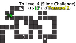 Level 4 (Slime Challenge): You will need to find Secret 16 on Level 3 and take the stairs down to the Slime Challenge. You will find it on the ground in the north-east corner of the caged area.