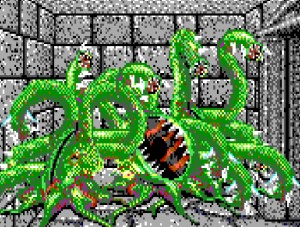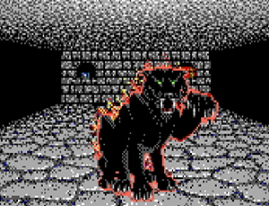As you walk through the lower corridor, stop at the first gate and use the Wizard's Ring to open it. Who would have thought that the ring was a key? Save before you open the second door, the Wizard's former pet cat is a little wild.